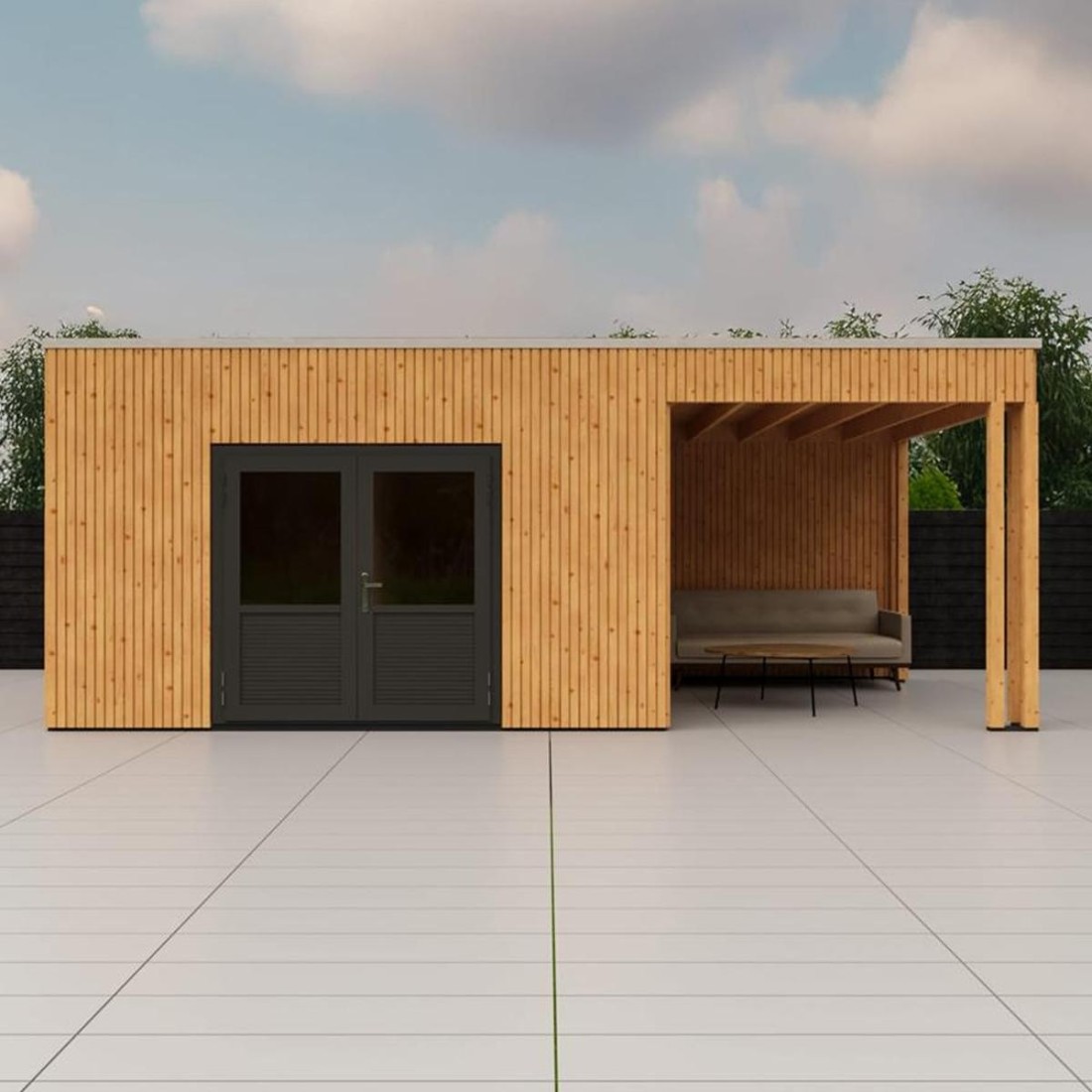 Met een Rhombus tuinhuis met overkapping creëert u niet alleen extra ruimte, maar ook een plek waar het leven vanzelf naar buiten verschuift.