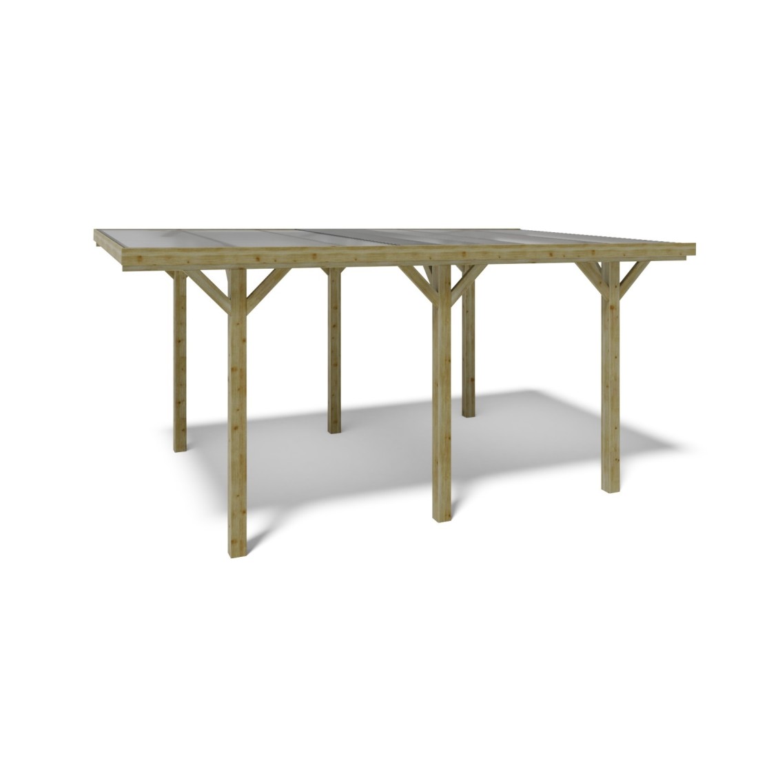 De houten carport CAR10PVCTR biedt een duurzame en stijlvolle bescherming voor voertuigen of tuinmeubilair.
