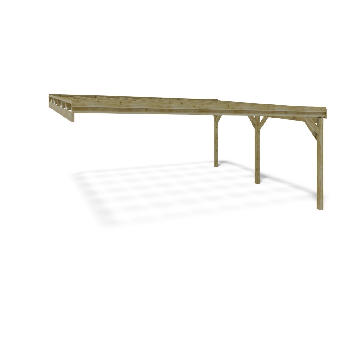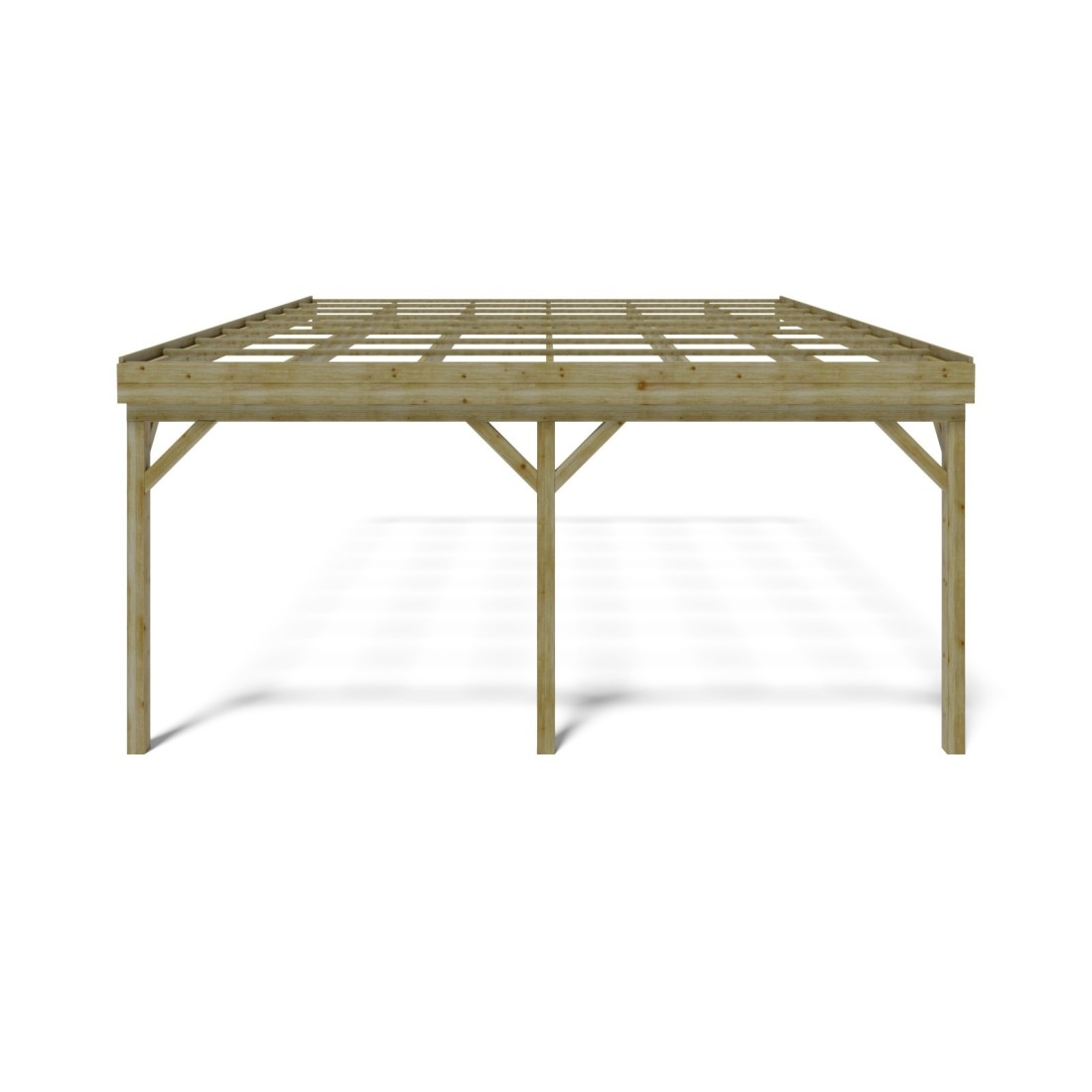 Het hout van de carport CAR23 is onder druk geïmpregneerd volgens de druk-vacuümmethode – een hoogwaardige behandeling die het hout verrijkt en versterkt tot diep in de vezels.