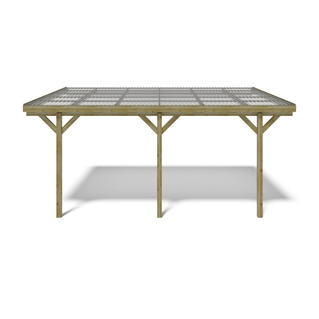 De houten carport CAR7-2PVCTR biedt een duurzame en stijlvolle bescherming voor voertuigen of tuinmeubilair.