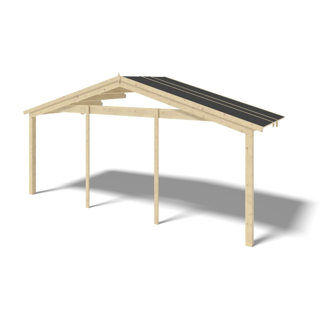 De houten overkapping DOM553 wordt geleverd als compleet bouwpakket met alle onderdelen en duidelijke montagehandleiding.
