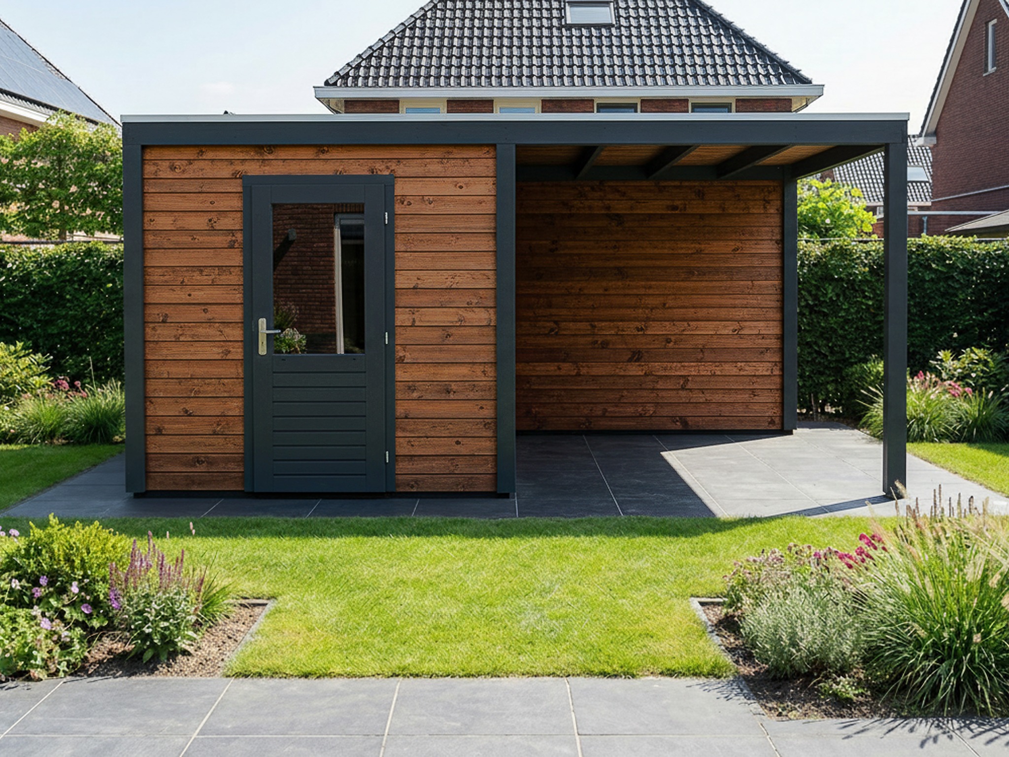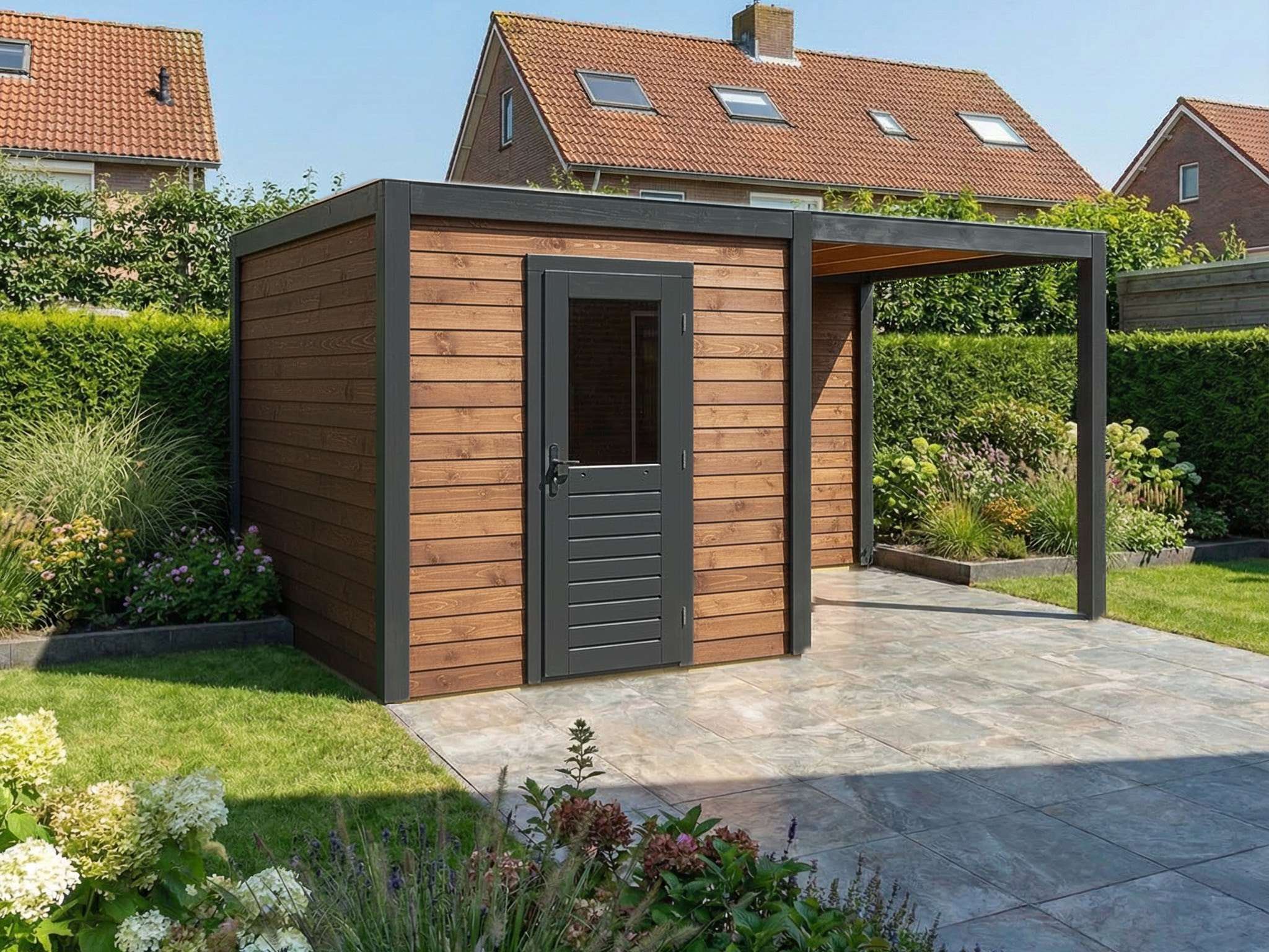 • Verkrijgbaar als tuinhuis of tuinhuis met overkapping