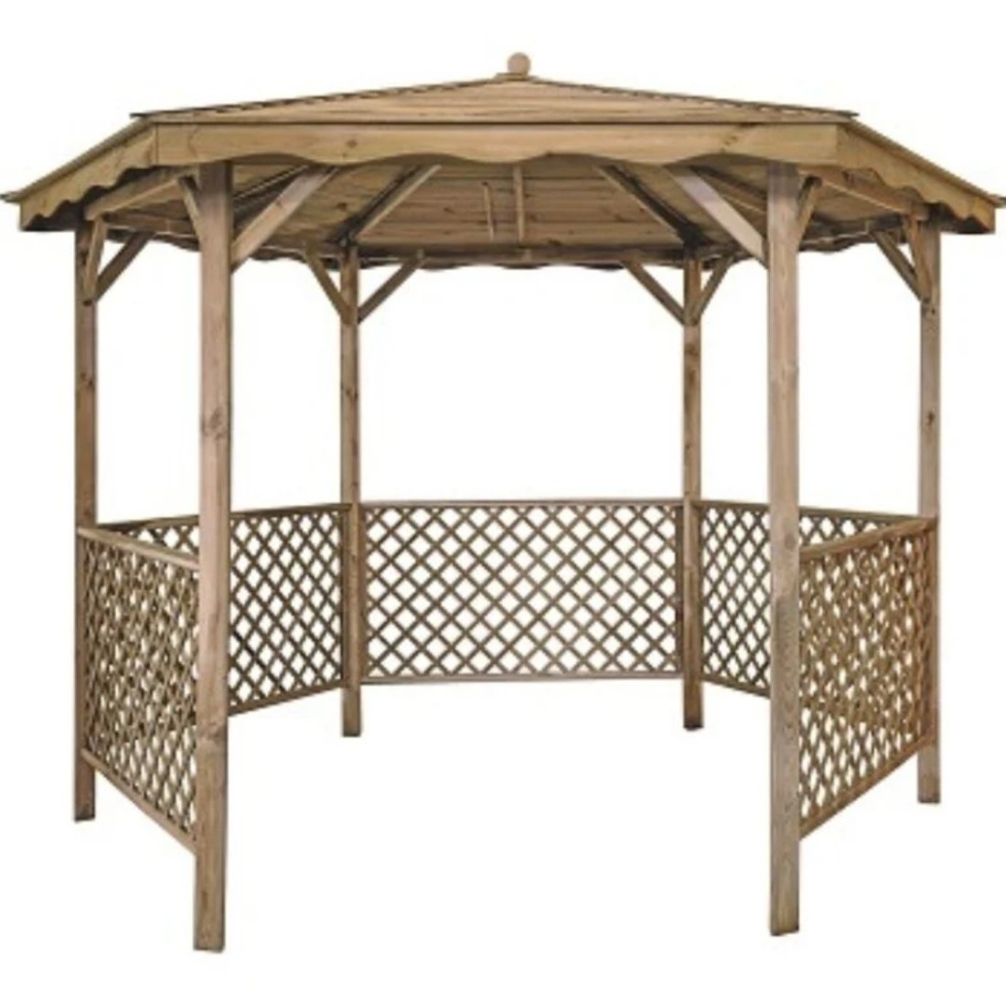 Overkapping / tuinprieel met decoratieve panelen met een oppervlakte van 5.62 m², met balken van 60x90 mm, gemaakt van gedroogd grenenhout, geïmpregneerd in de kleur groen.