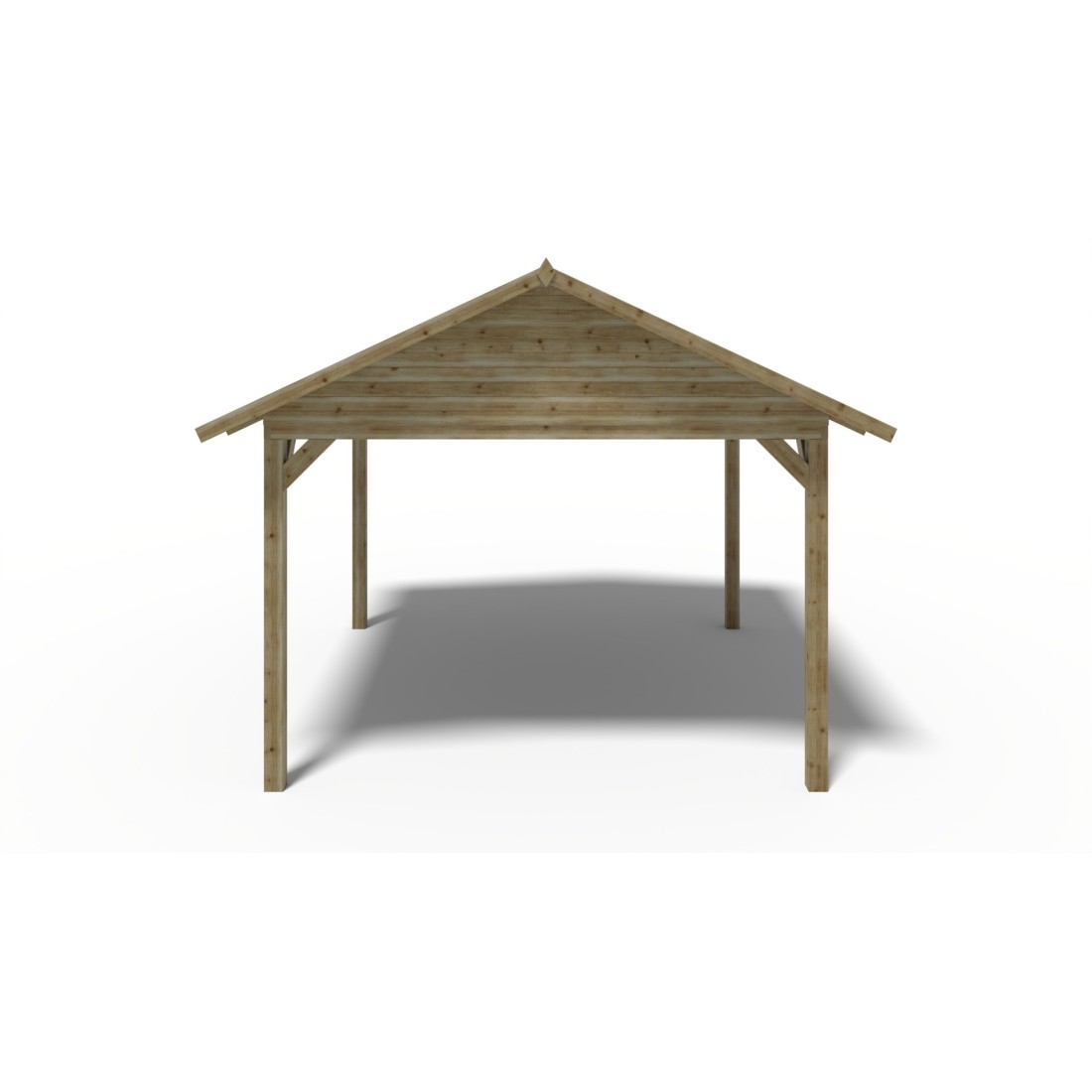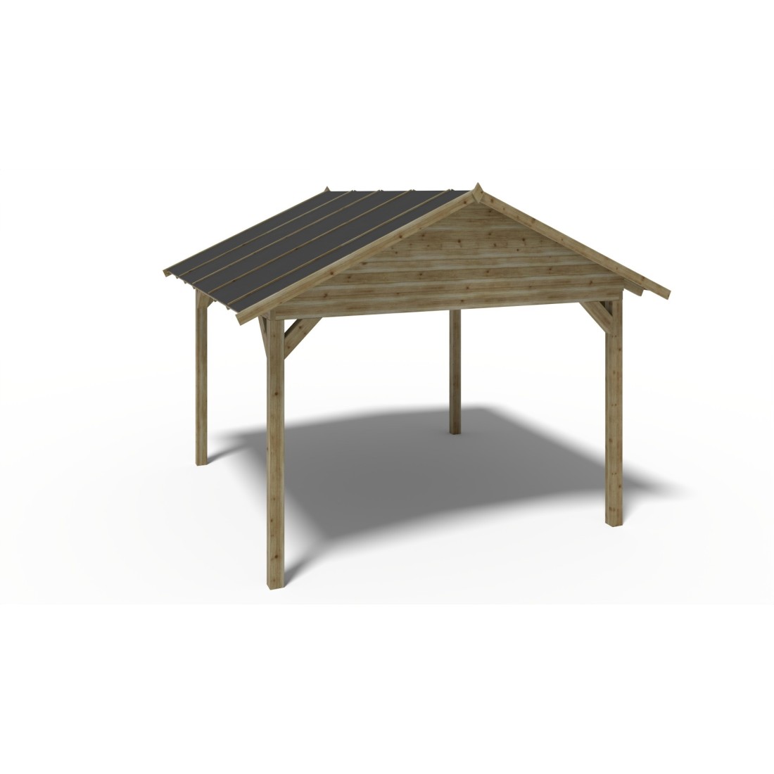 Met een oppervlakte van 16 m² en stevige balken van 120x120 mm dik vormt het een solide constructie die jarenlang meegaat.