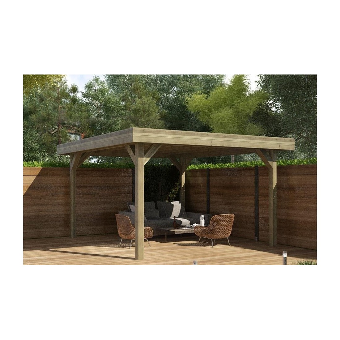 Met een oppervlakte van 16.3 m² en stevige balken van 120x120 mm dik creëert dit prieel een beschutte ruimte waar u comfortabel kunt ontspannen, dineren of tijd doorbrengen met dierbaren.De open constructie zorgt voor een natuurlijke ventilatie, terwijl het dak bescherming biedt tegen zon en regen. Zo ontstaat er een aangename, veelzijdige plek in uw tuin – het hele jaar door.