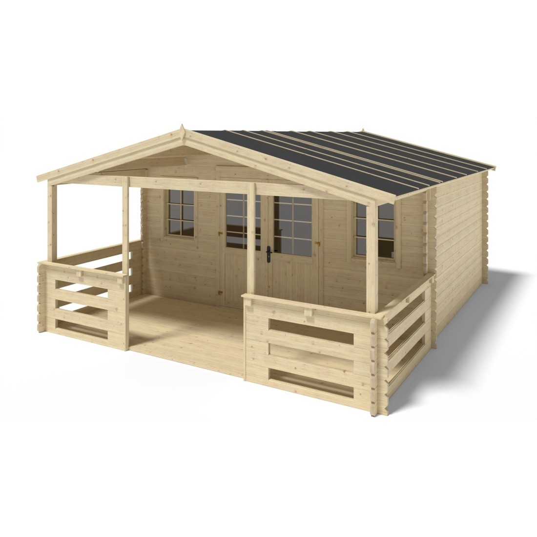 De veranda is vervaardigd uit vurenhout in de kleur transparant en past perfect bij houten tuinhuizen met een voorzijde van 5 m en een wanddikte van 40 mm.