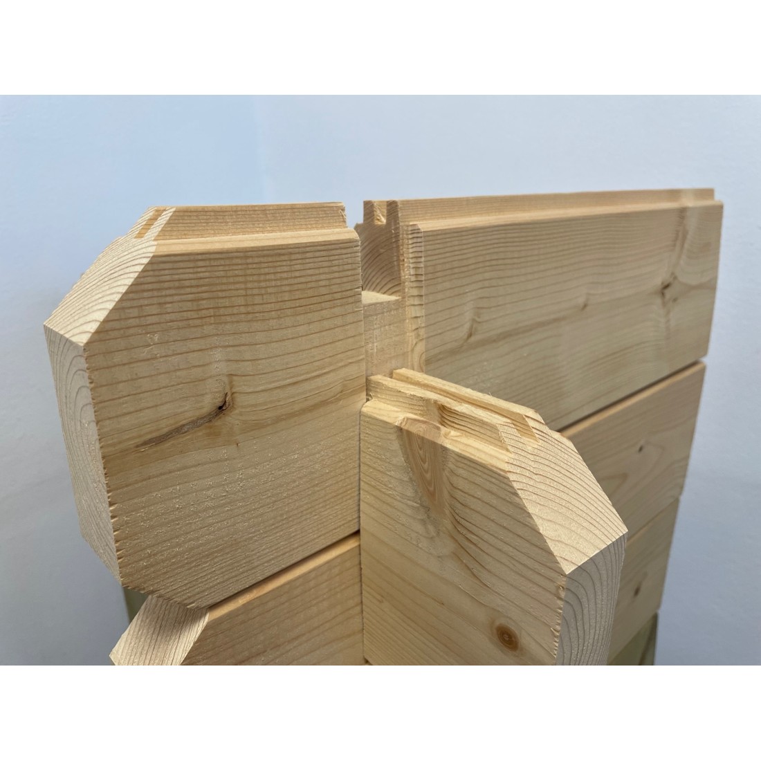 De constructie bevat zorgvuldig samengestelde houten elementen, zoals vingerlasverbindingen, voor extra stevigheid en duurzaamheid.