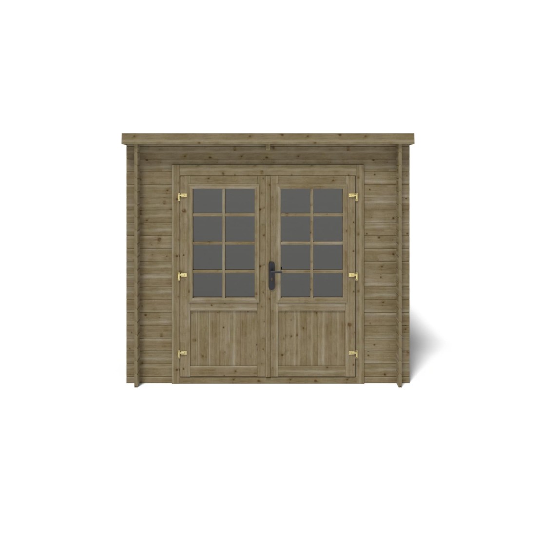 Het hout van het tuinhuis DOM724 is onder druk geïmpregneerd volgens de druk-vacuümmethode – een hoogwaardige behandeling die het hout verrijkt en versterkt tot diep in de vezels.