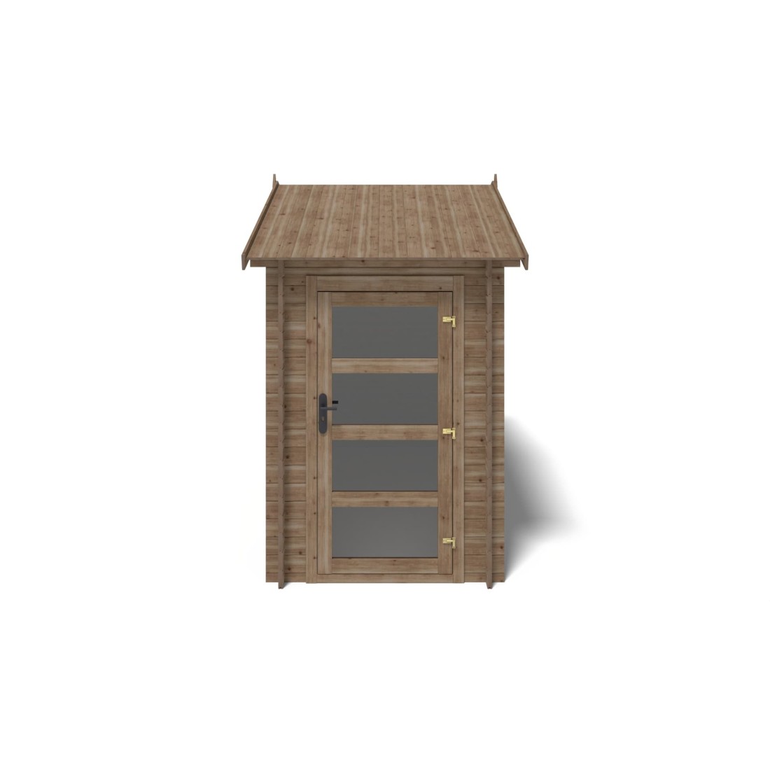 Het tuinhuis DOM673 is onder druk geïmpregneerd volgens de druk-vacuümmethode – een hoogwaardige behandeling die het hout verrijkt en versterkt tot diep in de vezels.