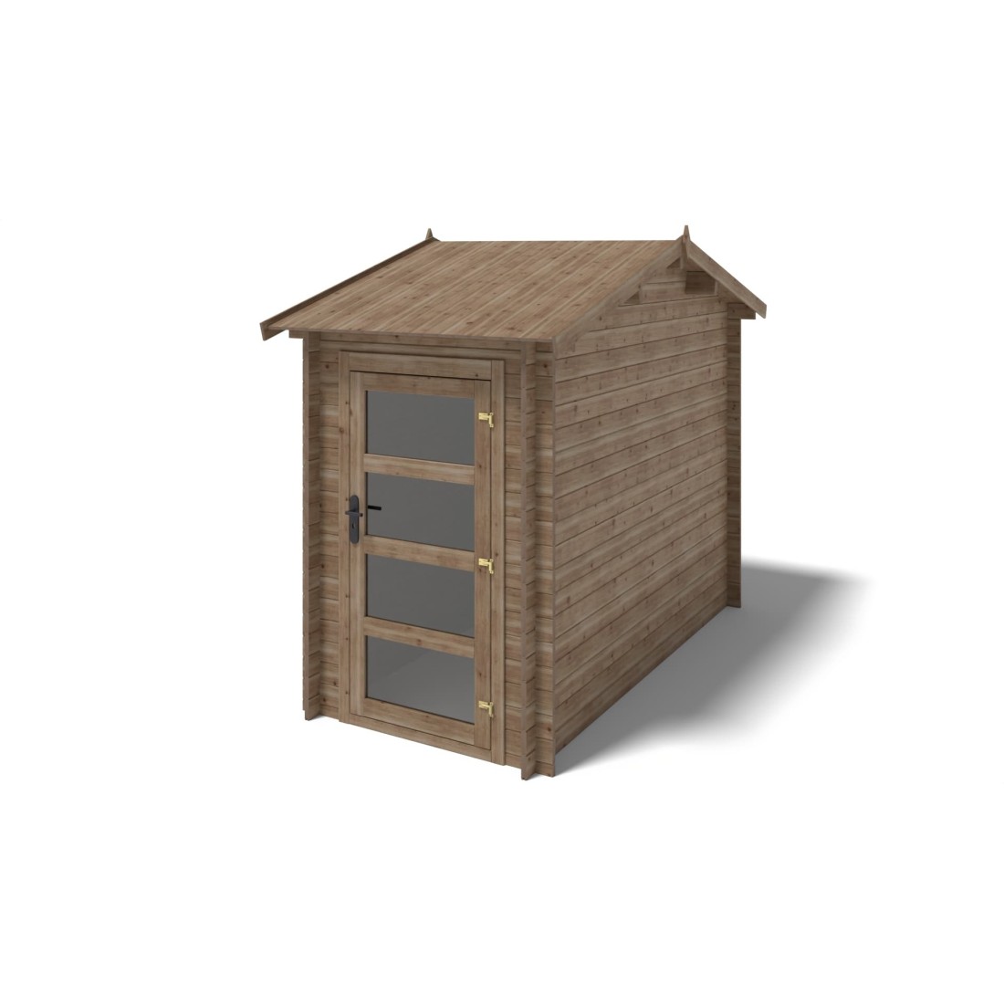 De houtkleur bruin kan naar wens worden aangepast met een beits of verf.Hout leeft – elke plank heeft zijn eigen structuur en karakter, wat elk tuinhuis uniek maakt.