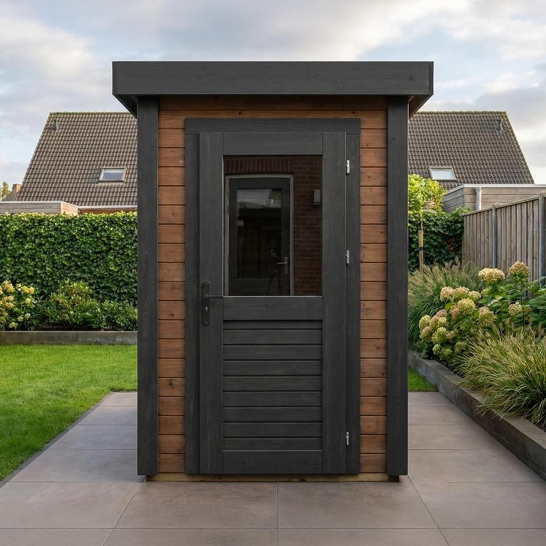 Binnenin draait alles om bruikbaarheid. Een slimme indeling, fijne toegankelijkheid en ruimte om echt door te pakken: tuingereedschap, fietsen, kussens, haardhout, klusmateriaal — alles krijgt een eigen plek. En omdat de afwerking net zo belangrijk is als de constructie, zie je aan alles dat dit gemaakt is om lang mee te gaan: strak aansluitende delen, een solide bouwgevoel en een uitstraling die je tuin optilt.