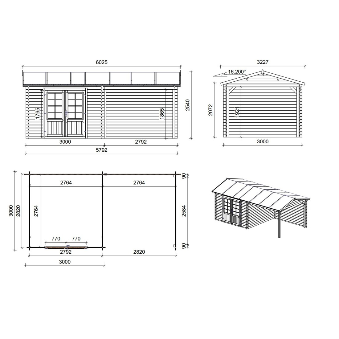 Tijdloos, praktisch en duurzaam – een stijlvolle opbergruimte met natuurlijke charme. Het tuinhuis DOM764 heeft een oppervlakte van 18 m², een breedte van 5.79 m, een diepte van 3 m en wanden van 28 mm dik.De montage verloopt eenvoudig dankzij de duidelijke handleiding en zorgvuldig voorbereide onderdelen.