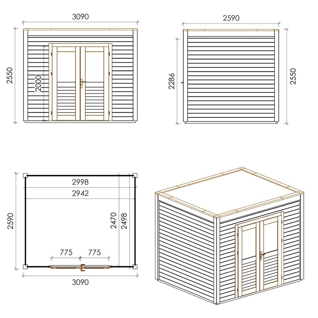 Het tuinhuis is onder druk geïmpregneerd volgens de druk-vacuümmethode – een hoogwaardige behandeling die het hout verrijkt en versterkt tot diep in de vezels. Dankzij deze duurzame bewerking behoudt het materiaal zijn natuurlijke uitstraling en blijft het jarenlang stevig, kleurvast en mooi.
