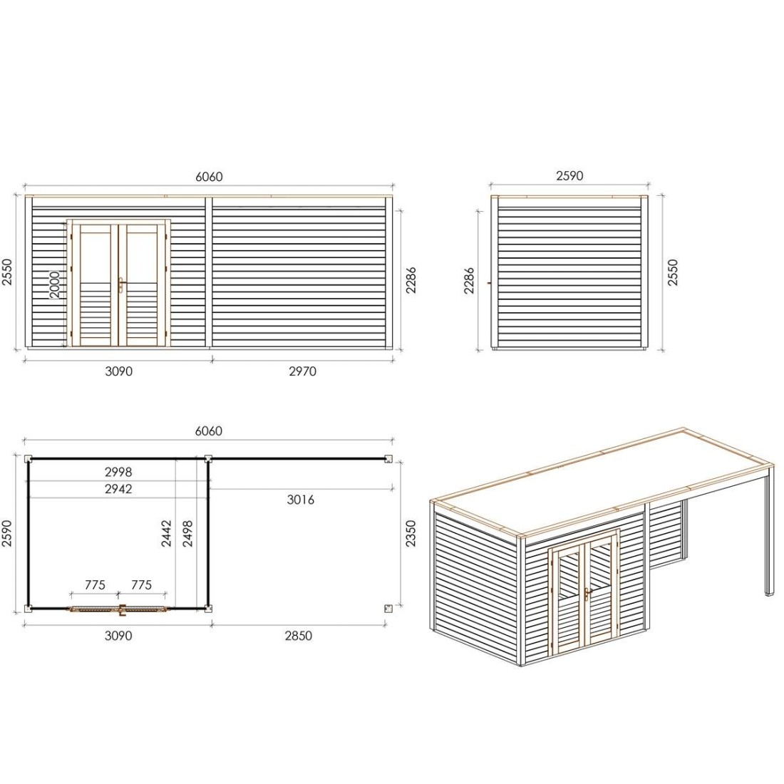Het tuinhuis is onder druk geïmpregneerd volgens de druk-vacuümmethode – een hoogwaardige behandeling die het hout verrijkt en versterkt tot diep in de vezels. Dankzij deze duurzame bewerking behoudt het materiaal zijn natuurlijke uitstraling en blijft het jarenlang stevig, kleurvast en mooi.