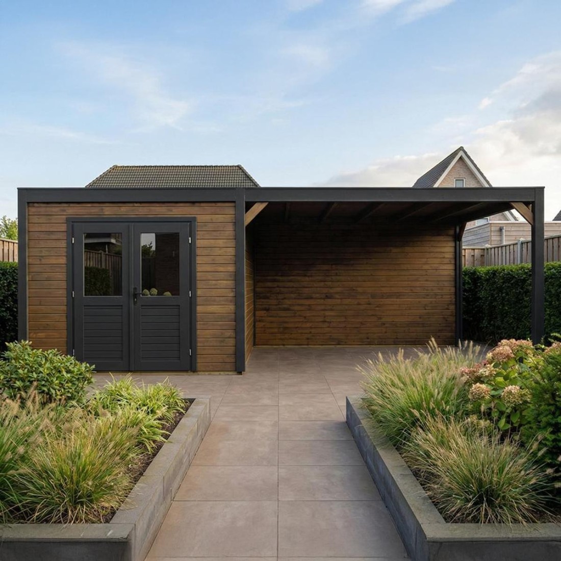 De moderne lijn is gemaakt voor mensen die houden van rust, ruimte en een heldere uitstraling. Geen drukke details, maar strakke vormen, sterke gevelvlakken en een moderne look die perfect aansluit op hedendaagse tuinen. Dit zijn buitenverblijven die niet “achterin de tuin verdwijnen”, maar juist een statement maken: minimalistisch in vorm, luxe in gevoel.