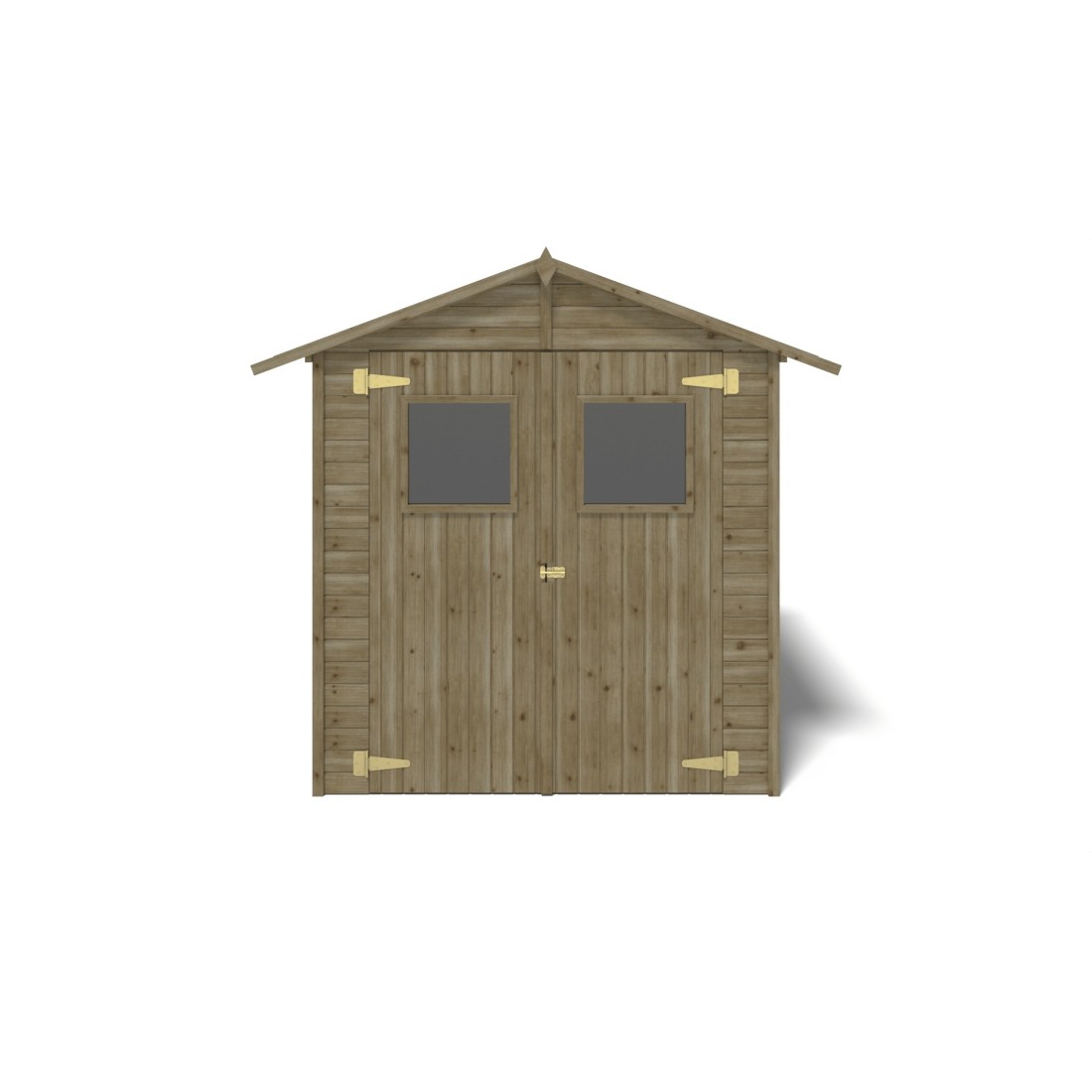 Het hout van het tuinhuis DOM218 is onder druk geïmpregneerd volgens de druk-vacuümmethode – een hoogwaardige behandeling die het hout verrijkt en versterkt tot diep in de vezels.