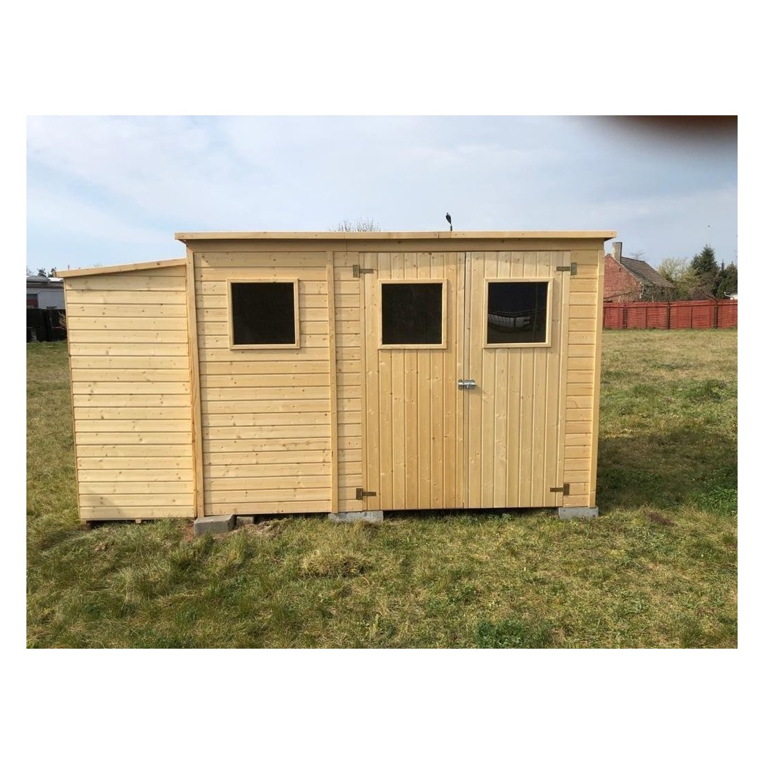 Het hout van het tuinhuis DOM421 is onbehandeld en klaar om naar eigen voorkeur te worden afgewerkt.
