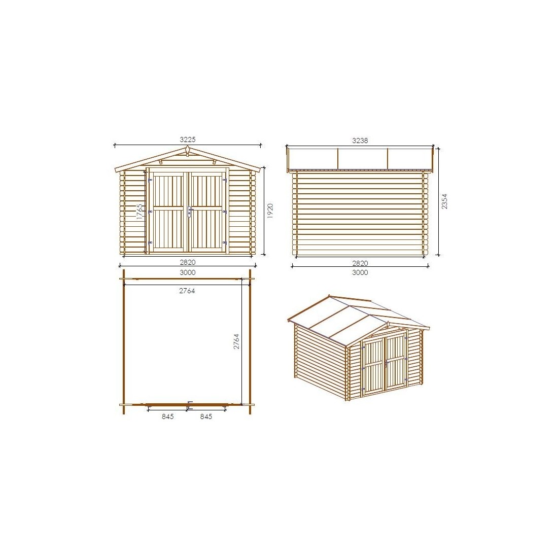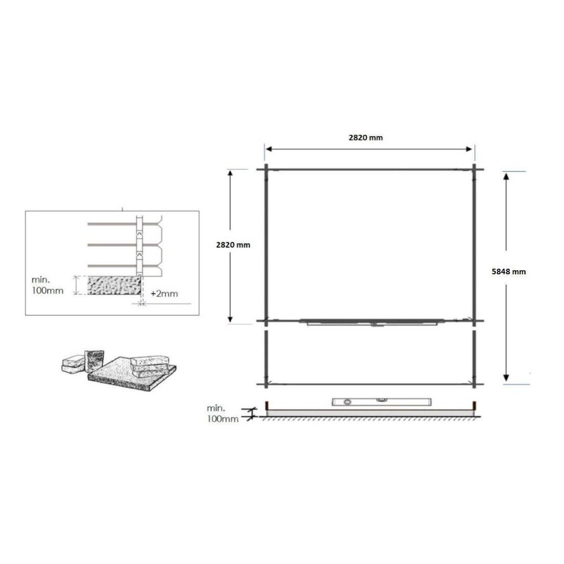 Met een totale oppervlakte van 18 m², een breedte van 3 m, een diepte van 3 m en een wanddikte van 28 mm, biedt dit huisje zowel comfort als veelzijdigheid.