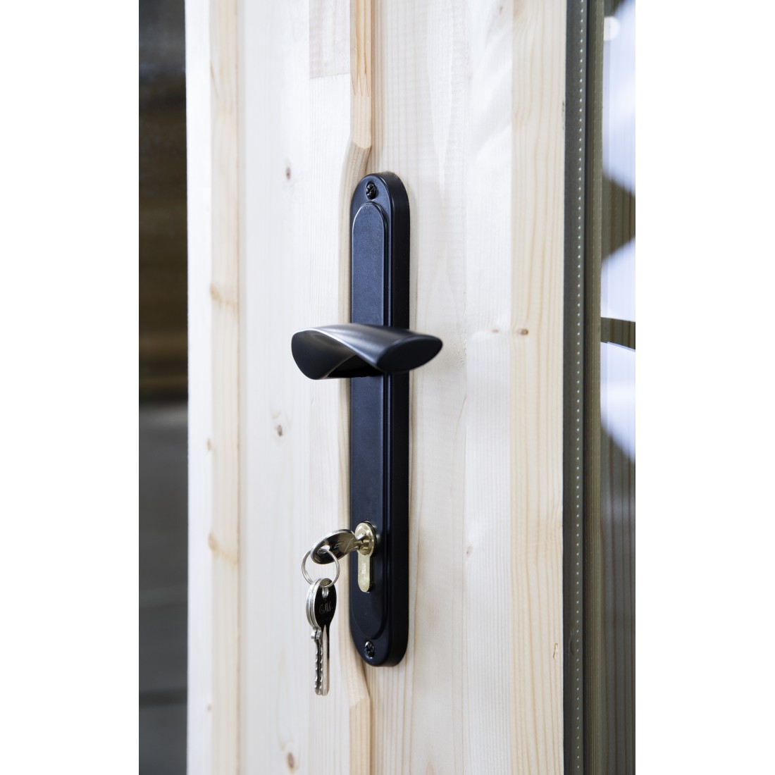Het tuinhuis DOM652 wordt onbehandeld geleverd en kan naar wens worden afgewerkt. Voor een lange levensduur wordt aanbevolen het hout te behandelen met een geschikt buitenproduct dat bescherming biedt tegen vocht en vergrijzing.