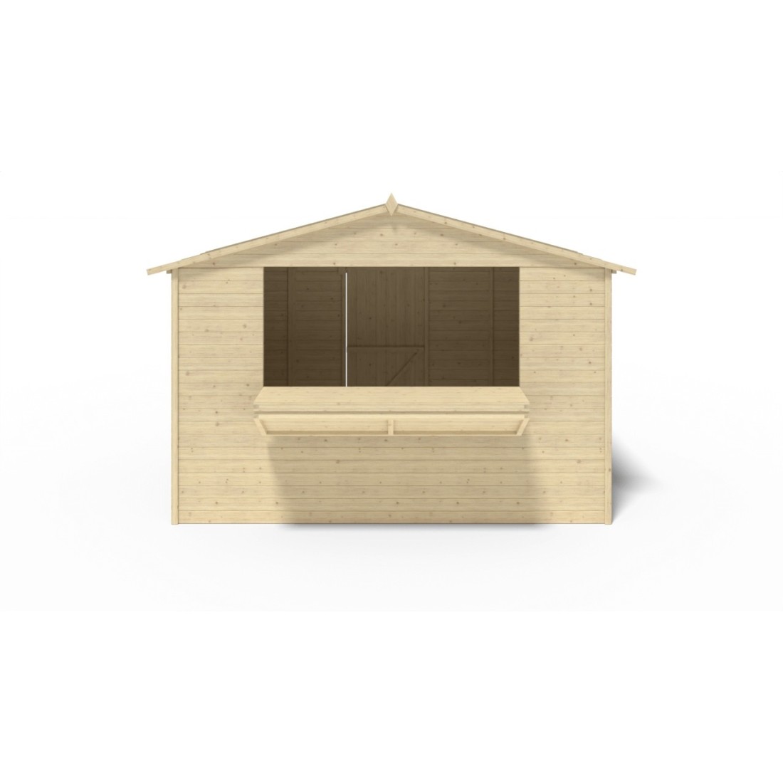 Met zijn compacte afmetingen en natuurlijke uitstraling is deze kiosk ideaal voor campings, sport- en recreatieterreinen, hotelomgevingen, seizoensverkoop, markten of evenementen zoals kerstmarkten.