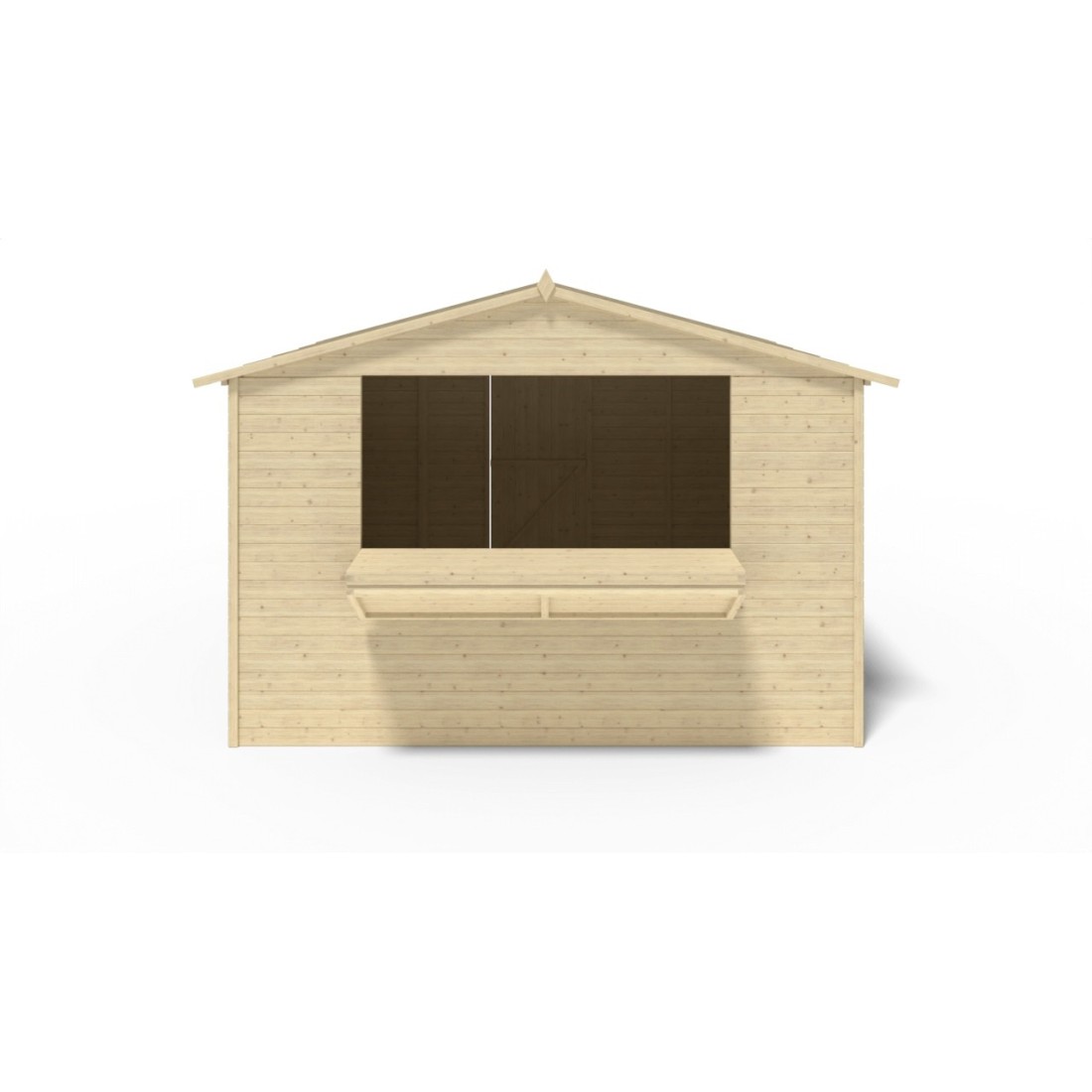 Met zijn compacte afmetingen en natuurlijke uitstraling is deze kiosk ideaal voor campings, sport- en recreatieterreinen, hotelomgevingen, seizoensverkoop, markten of evenementen zoals kerstmarkten.