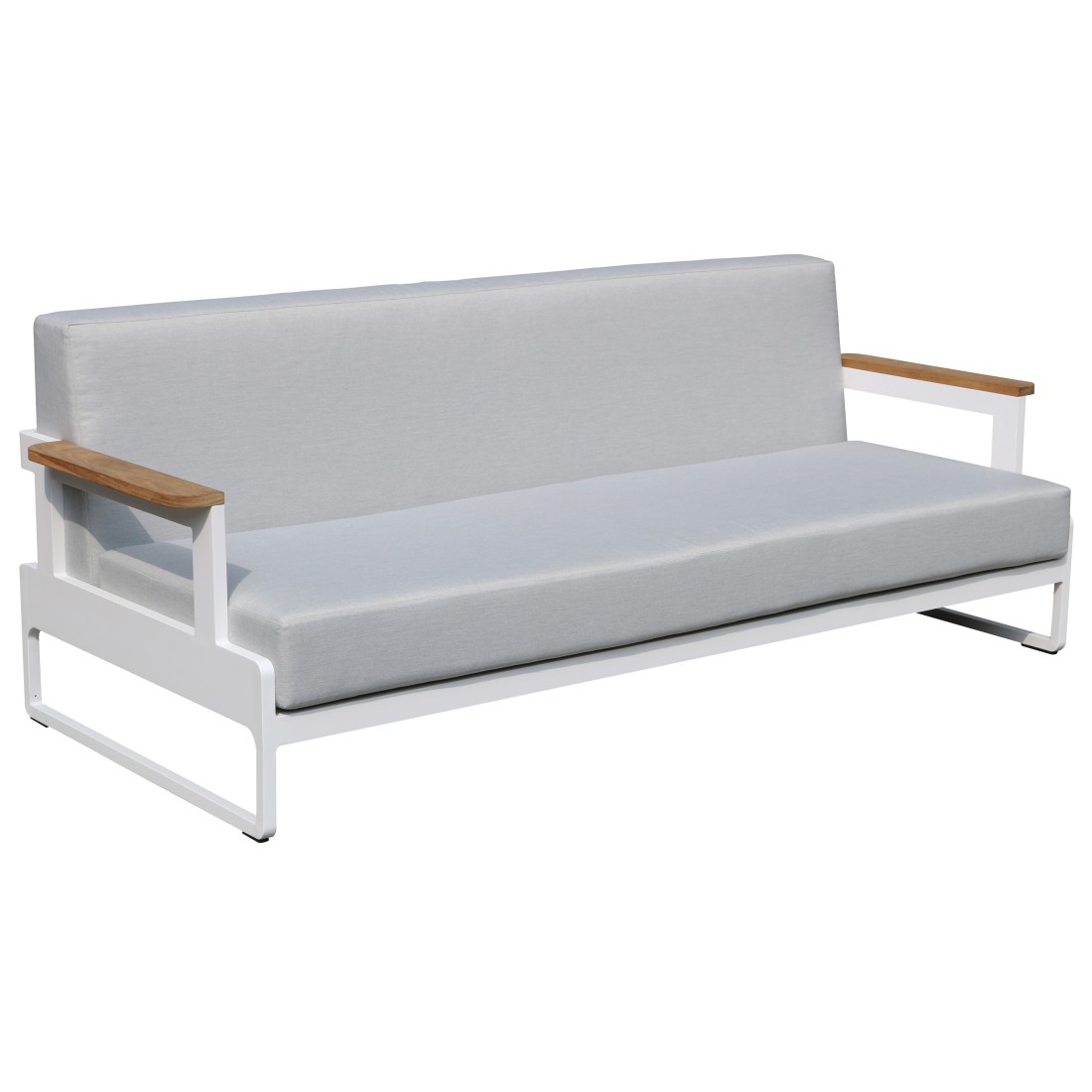 Zittinghoogte: 36 cm.Licht aluminium frame, gepoedercoat in wit RAL9010.Polyester bekleding in grijs, met ritssluiting, afneembaar. Kussens gevuld met schuim.Product wordt als geheel verkocht.Garantieduur op textiele onderdelen: 1 jaar.Garantieduur op aluminium en houten onderdelen: 2 jaar.
