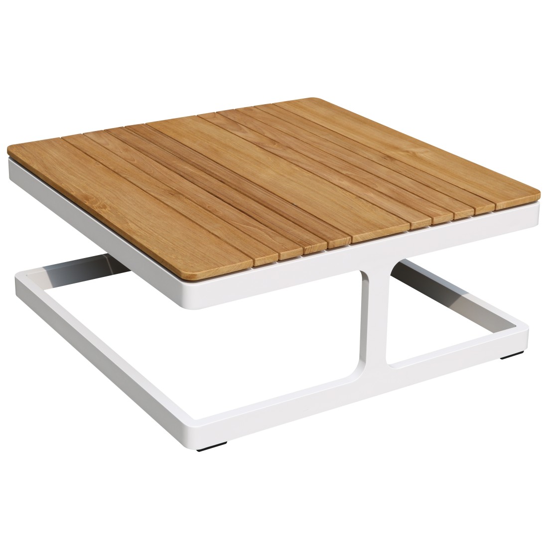 Licht aluminium frame, gepoedercoat in wit RAL9010.Teakhout met een dikte van 18 mm.Product wordt als geheel verkocht.Garantieduur op aluminium en houten onderdelen: 2 jaar.