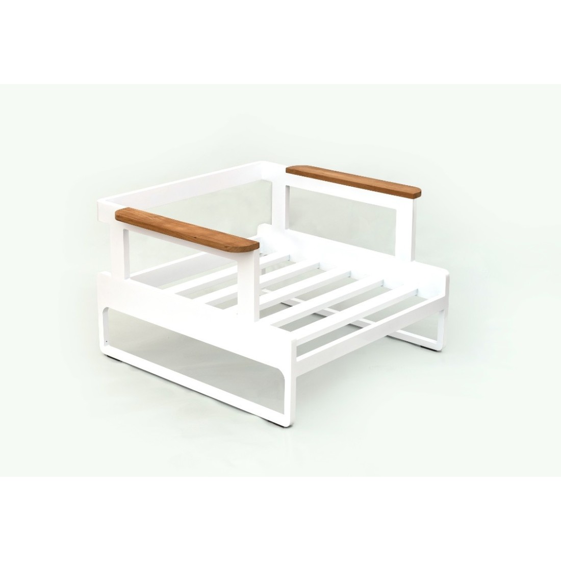 Het frame van de fauteuil is van aluminium en gepoedercoat.