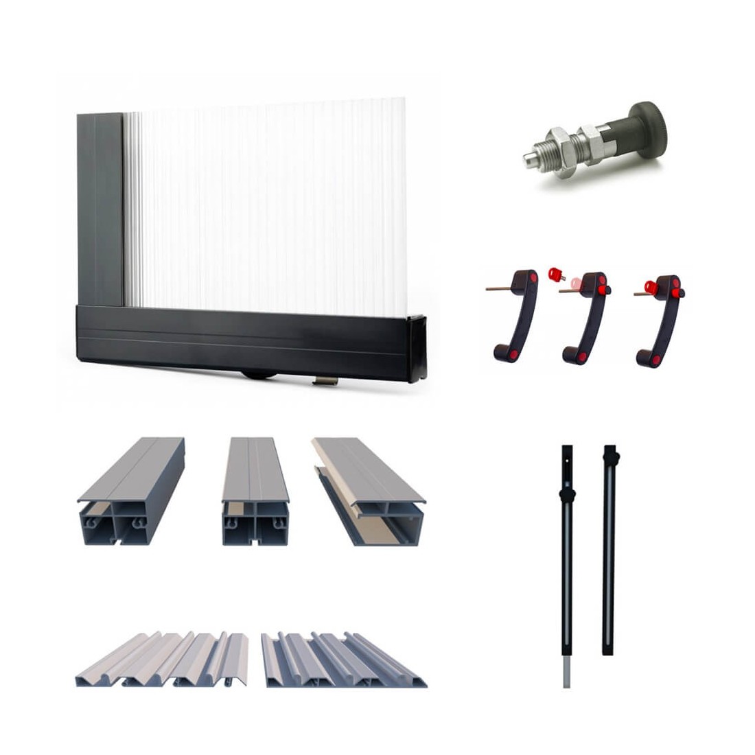 - Poedergecoate profielen in kleur RAL 7016 – grafiet of RAL 7037 – grijs
