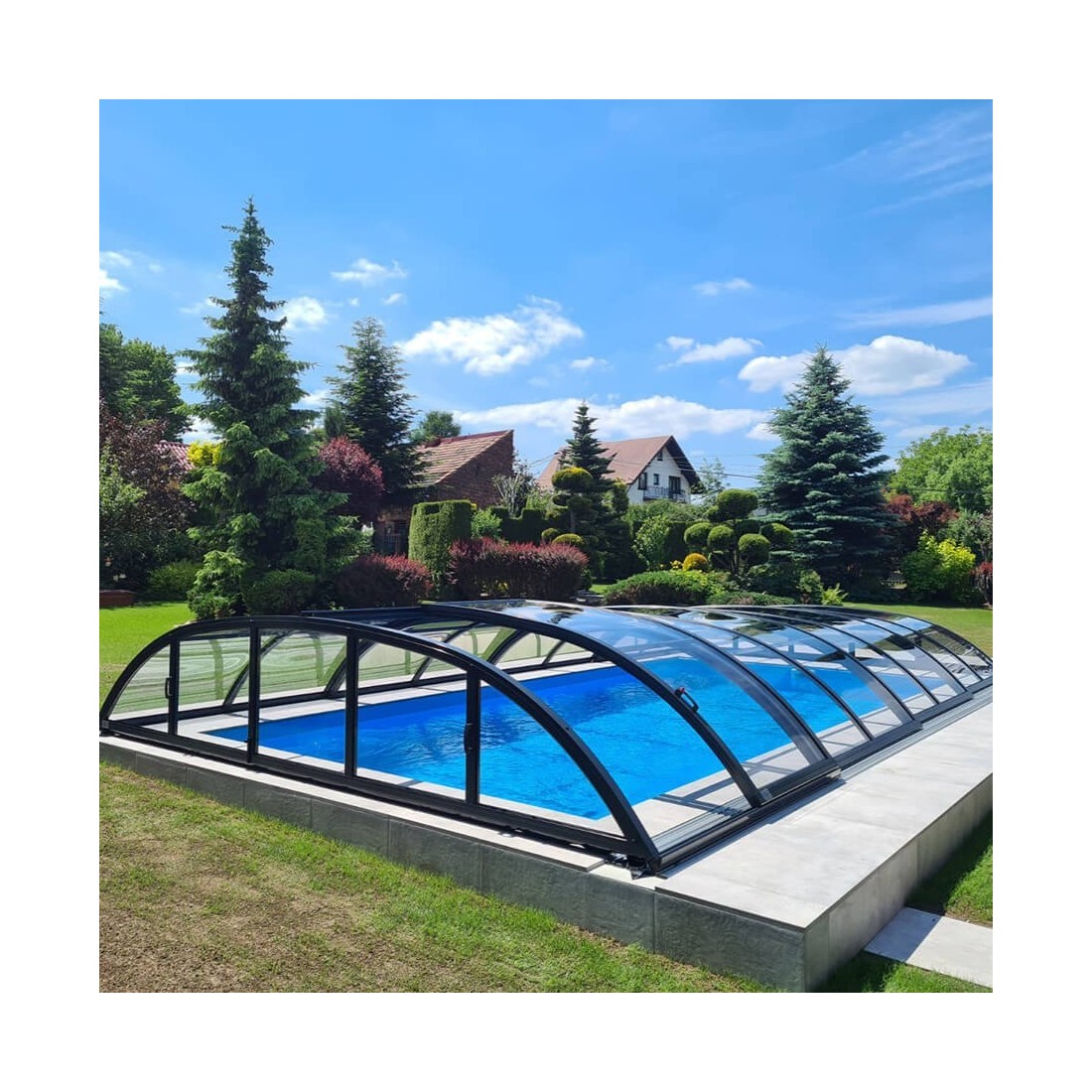De overkapping is gemaakt van Massief polycarbonaat 3 mm, een materiaal dat zorgt voor uitstekende isolatie en bescherming tegen kou, sneeuw en ijs. Dit voorkomt warmteverlies, verlaagt het energieverbruik en houdt het zwembadwater aangenaam schoon.
