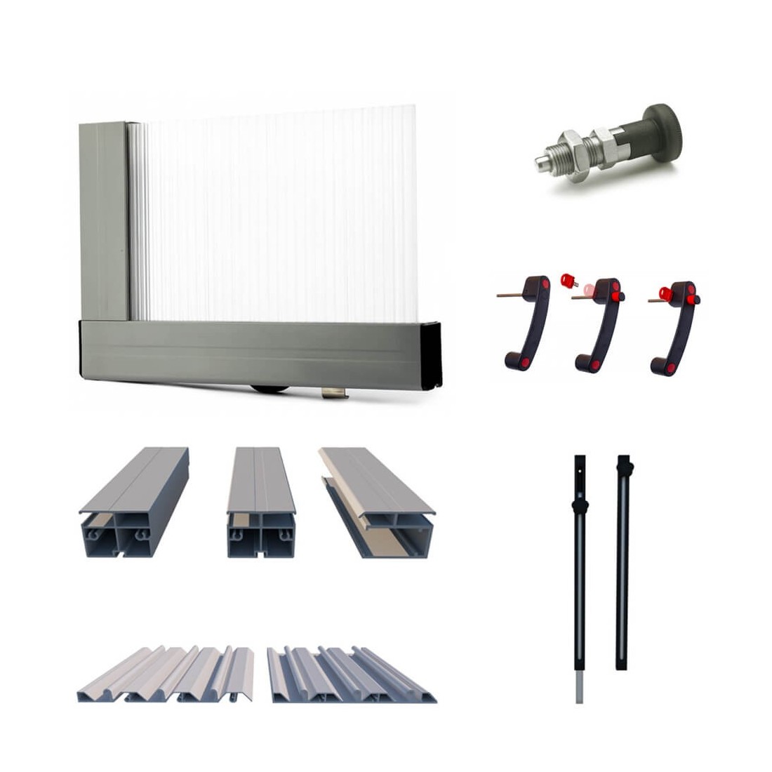 - Poedergecoate profielen in kleur RAL 7016 – grafiet of RAL 7037 – grijs