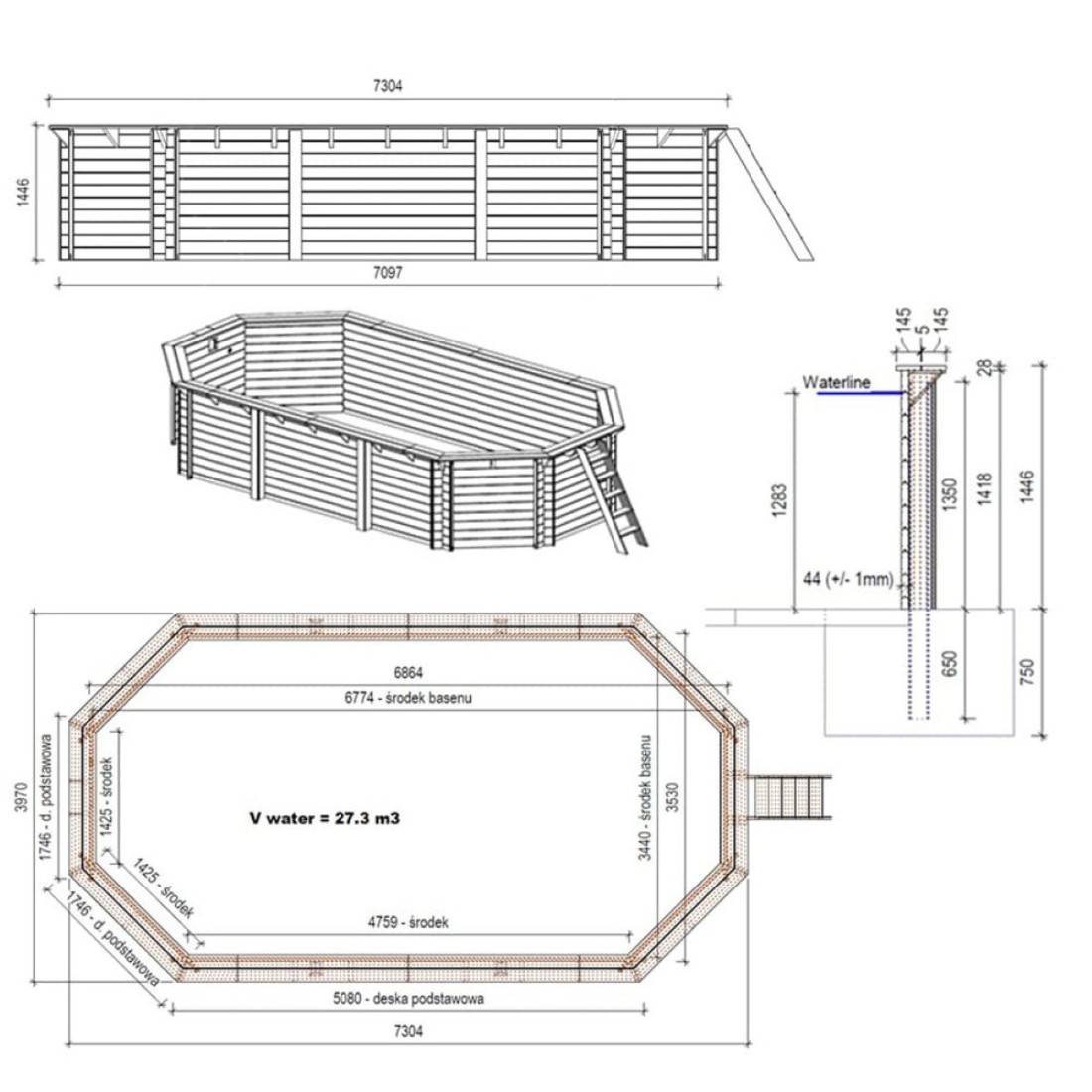 Het zwembadmodel met afmetingen 7.3 × 3.97 m en een hoogte van 1.45 m is ontworpen zodat het hele gezin comfortabel kan genieten van verkoeling op warme zomerdagen.