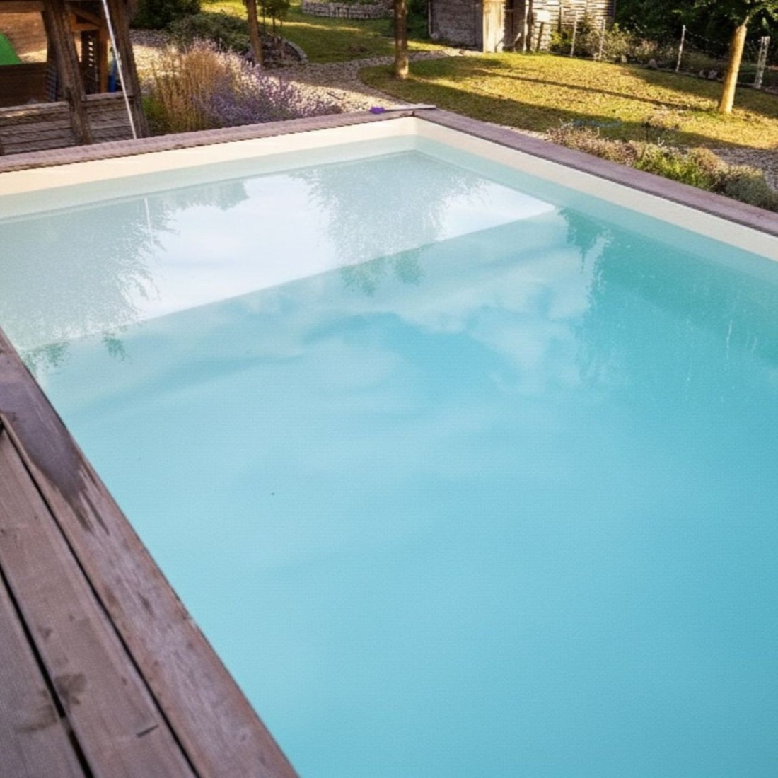 Het zwembad is gemaakt van geïmpregneerd grenenhout dat, dankzij het impregneerproces: