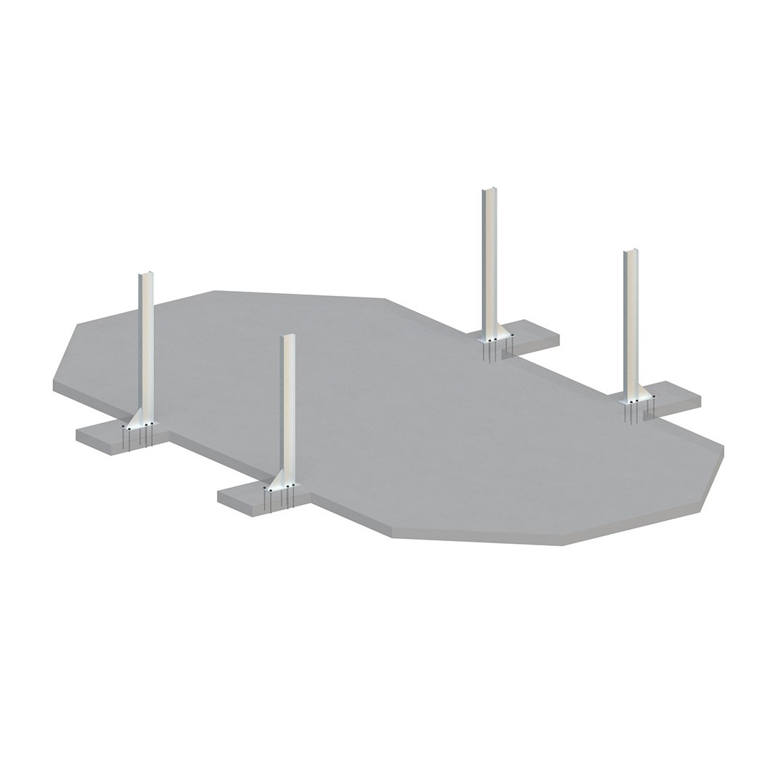 - een gewapende betonplaat met een minimale dikte van 10 cm is vereist (plaatselijk minimaal 30 cm onder de steunen),