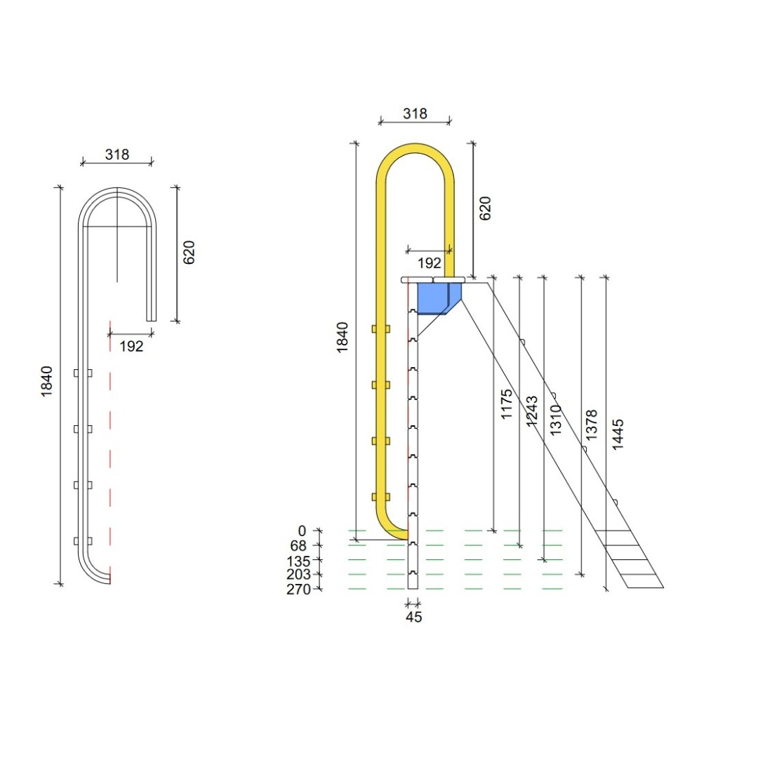 De trap is vervaardigd uit hoogwaardige materialen en is bestand tegen corrosie, chemicaliën en weersinvloeden. Daardoor gaat hij vele jaren mee. De trap is uitgerust met antisliptreden en stevige leuningen, die stabiliteit en zekerheid bieden bij het in- en uitstappen van het zwembad.